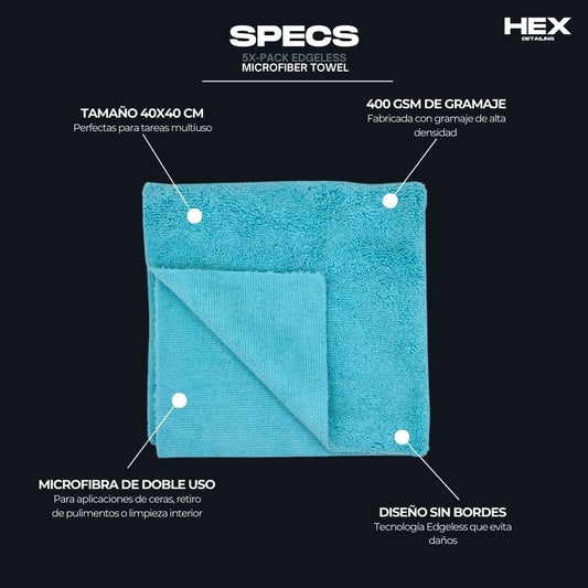 5 Toallas Multiuso Edgeless 40x40 cm 400 gsm